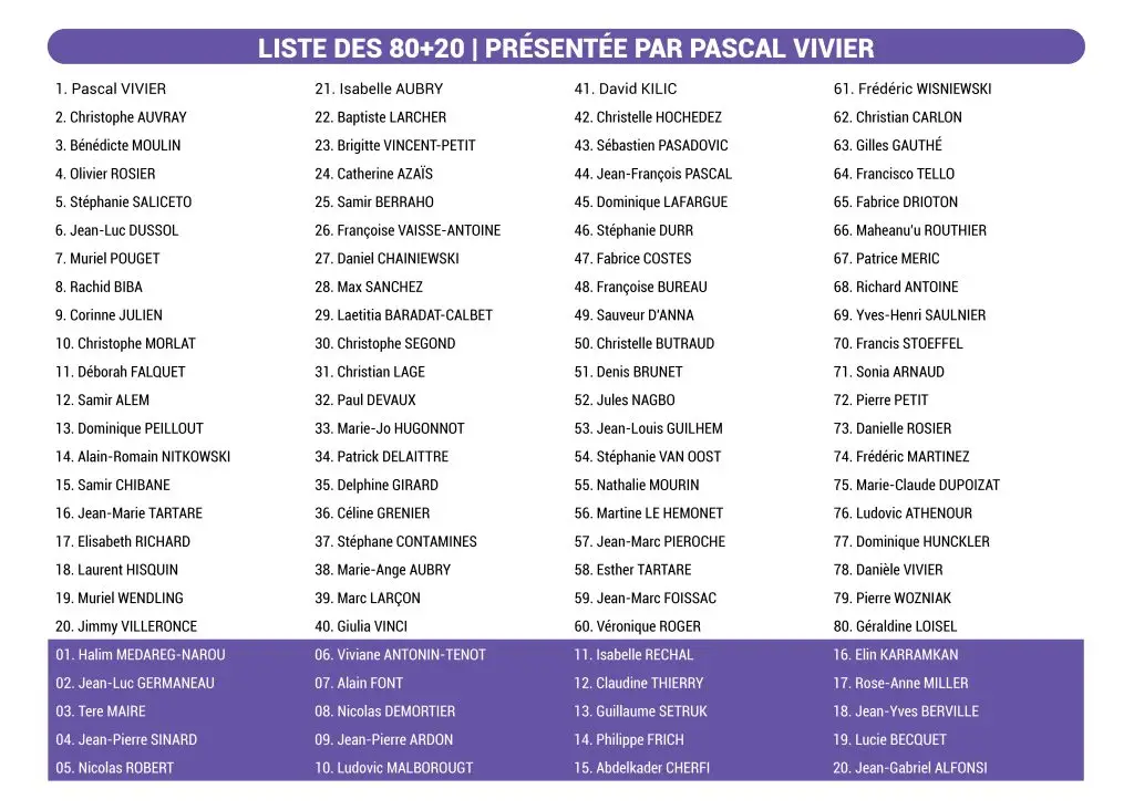 Soutenue par : Mohamed AARRAS, Didier ABONNEAU, Marie-Claude ALBA, Stéphane ALBERT, Béatrice ALGER, Rémi AMARA, Sylvie AMOURETTE, Marie ANDRE, Catherine ANTOINE, Everrt ATTAUD, Pascal AUBRY, Benoit BACCAR, Levon BAGHDASSARIAN, Samia BARA, Omar BELLAHCENE, Véronique BELLON MIGNON, Abdenour BELLOUT, Omar BENHAMOUCH, Gaëtan BERNA, Sophie BERNARD, Bruno BERRAH, Richard BIDON, Jean-Marc BIRGINIE, Simon BONY, Francis BOSCART, Christophe BOUCHARECHAS, Charles BOULANGER, Claudine BOURDIN, Laetitia BOVEE, Bernadette BRANGIER, Brigitte BREILLAD, Mickael BRETTE, Nicolas BRILLET, Gilbert BRULU, Nicolas BUDILLON, Léopoldine BUSOLINI, Sylvia BUSSI, Philippe BUZON, Frantz CABRERA, Yvan CAPO, Régine CAPY, Martine CARROUEE, Jean-Pierre CELESTINE, Antonia CERIAC, Cécile CEVOZ-MAMI, Patrick CHABRIDON, Jean-François CHANARD, Nathalie CHANARD, Patrick CHAPELAND, Didier CHARAMELET, Corinne CHARDEY, Fabienne CHAVANEL, Aïssa CHERFI, Sabine CHERRY, Marie-Claude COACOLO, Cécile COEUGNET, Marie-Christine COLIN, Jérémy COLIN, Sylvia COMBET, Danielle CONTARET, Françoise COUCHINAVE, Christian CRATER, Christophe CRATER, Stéphanie CUNY, Eddy DALIDAN, Marielle DAMPIERRE LUCIANI, Alexandra DE WITTE, Martine DECAUDIN, Christine DELMAS, Stéphane DELPRAT, Gilles DENAT, Bernard DESPIAU-PUJO, Amélie DESTIN, Frédéric DIAZ, Frédéric DIDONNA, David DIMARCO, Nicolas DION, Éric DJEGHLIL, Samuel DOLLET, Abdallah DRIOUCH, Véronique DROIT, Yann DULISCOUET, Claude DUMSER, Audrey DUPUIS, Éric DUPUY, Mélinda DURIEZ, Hafida DZIATKIEWICZ, Frédéric EDMOND, Hammadi EL AALAOUI, Géraldine ESCOFFIER, Marie-Pierre ESTEBAN, Naima FAROUK, Yoan FAUREL, Laetitia FLOQUET, Magali FOMBARON, Damien FRANTZEN, Jacques FRESNE, David FUSTE, Jean-Paul GARRIBOTTO, Cyril GAUDICHON, Thierry GIRARD, Gérard GORCYCA, Patrick GOSSELIN, Laurent GOUNTCHEV, Stéphanie GOUNTCHEV, Gérard GRANGETEAU, Gérard GRELLE, Cyrille GUERET, Robert GUILON, Valérie HAENEL, Fatiha HACHAICHI, Hamza HAMZAOUI, Mohammed HAMZAOUI, Houyame HARBAZ, Karine HECQUET, Thierry HENIQUE, Delphine IMBERT, Daniel ISAIA, Catherine IZAMBARD, Julie JABOEUF, Francis JACQUELINET, Franck JAMMES, Oulfa JEMAI, Marie-Line JOSEPH, Martine KACI ABDALLAH, Frédéric LACOURBAS, Henri LALOUETTE, Jean-Christophe LAMARQUE, Catherine LANG, Marie-Agnès LARIFLA, Rémi LASNAMI, Laetitia LE BOURHIS, Nelly LE TOLLEC, Philippe LEBRERE, Thierry LECLERC, Marie-Christine LEFEUVRE, Mireille LEGOUIX DELORME, Valérie LEJAMBLE, Agnès LEMBERT, Claudine LEMOINE, Arnaud LENGLIN, Nathalie LEPELTIER, Xavier LEROUX, Rafaëlle LESAUVAGE, Irene LEWKOWICZ, Stéphanie LHOUMEAU, Aymeric LOUIS, Livia LOWENSKI, Jean-Yves LUGO, Helena MALLION, Anne MAMOUNI, Nicolas MANGARD, Éric MANNE, Pierre MARIANI, Fred MARIE-LOUISE, François MARTEAU, Arnaud MARTIN, Jeanne-Marie MATHOURAPARSAD, Stevens MAURIN, Jean Marcel MBEN EONE, Sabrina MERCIER-ROCHE, Henriette MEUNIER, Jean-Philippe MEUNIER, Jean-Marc MOLINA, Isabelle MONNET, Philippe MOUNAC, Ghislain MOUQUET, Lionel MOURY, Éric MUCCI, Stéphanie MUNOZ, Alban NAPOLY, Paul NEMET, Sandrine NICOLAÏ, Célia PALCY, Danielle PALVAIR, Sandrine PANCARTE, Daniel PARDON, Martin PASTOUR, Jean-Michel PAULY, Laurent PELAT, Laurent PERPOIL, Stéphane PERRONE, Jocelyn PETCHY, Bruno PETROLO, Alain PIAT, Cynthia PIERRE CAPITAINE, Caroline PIERRON, Stéphane POMMIER, Cyril POUZET, Vincent QUENEAU, Abdel-Hafidh RAMLA, Yves RAVEL, Laurent RAVERA, Dominique REDON, Didier REGNES, Éric RENAUD, Yvette REVEL, Carine RIBES, Michel RICOU-CHARLES, Fabien RODRIGUEZ, Philippe ROUSSEAU, Bernard SABOURAUD, Françoise SALVAYRE, Pedro SANCHEZ ANDRES, Thierry SAND, Valérie SAUVETRE ROUX, Salma SEGHIR, Christine SERVANT VOYER, Mostafa SHOUL, Virginie SIMON, Jean SKORUPA, Antoine SOLA, Marie-Françoise SOUC, Thierry SOULIE, Nicolas SOUPRAYEN, Alan SYLVESTRE, Dominique SYLVESTRE, Maryse TAKORABET, Valérie TAMISIER, Stéphane TEXIER, Micheline TISBA, Tania TONY, Raymond VALADE, Bertrand VARDE, Christophe VARENNES, Patrice VERRYSER, Florence VICENZI, Marie-Claude VIGILANT, Aurélien VIGNERON, Bohdana VYSLOUZILOVA, Pascal ZABAREL, Annie ZAMANT.